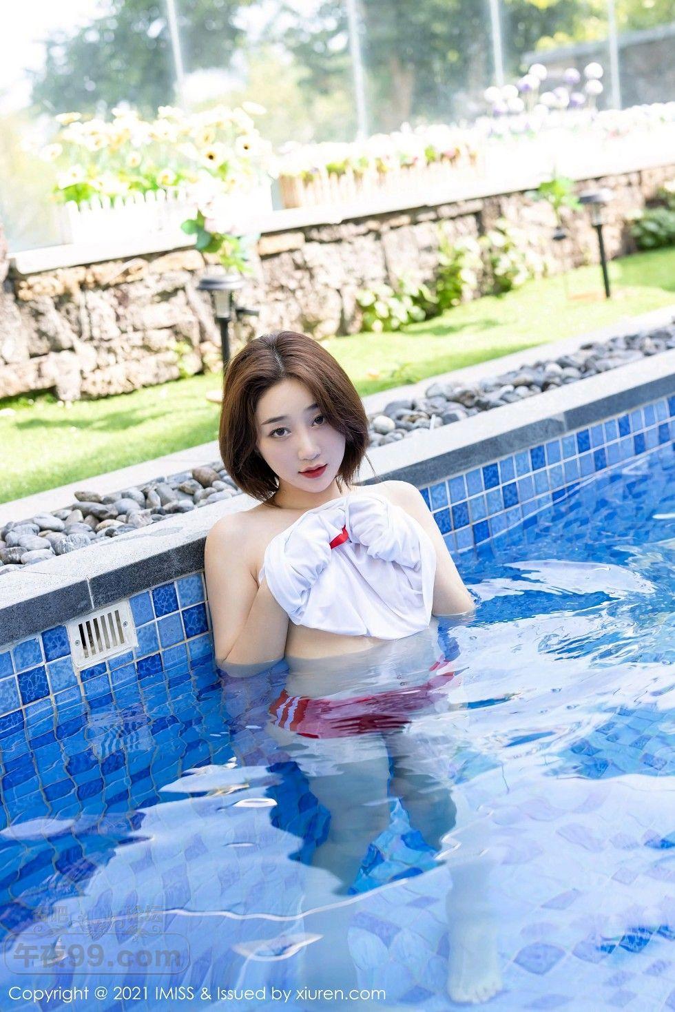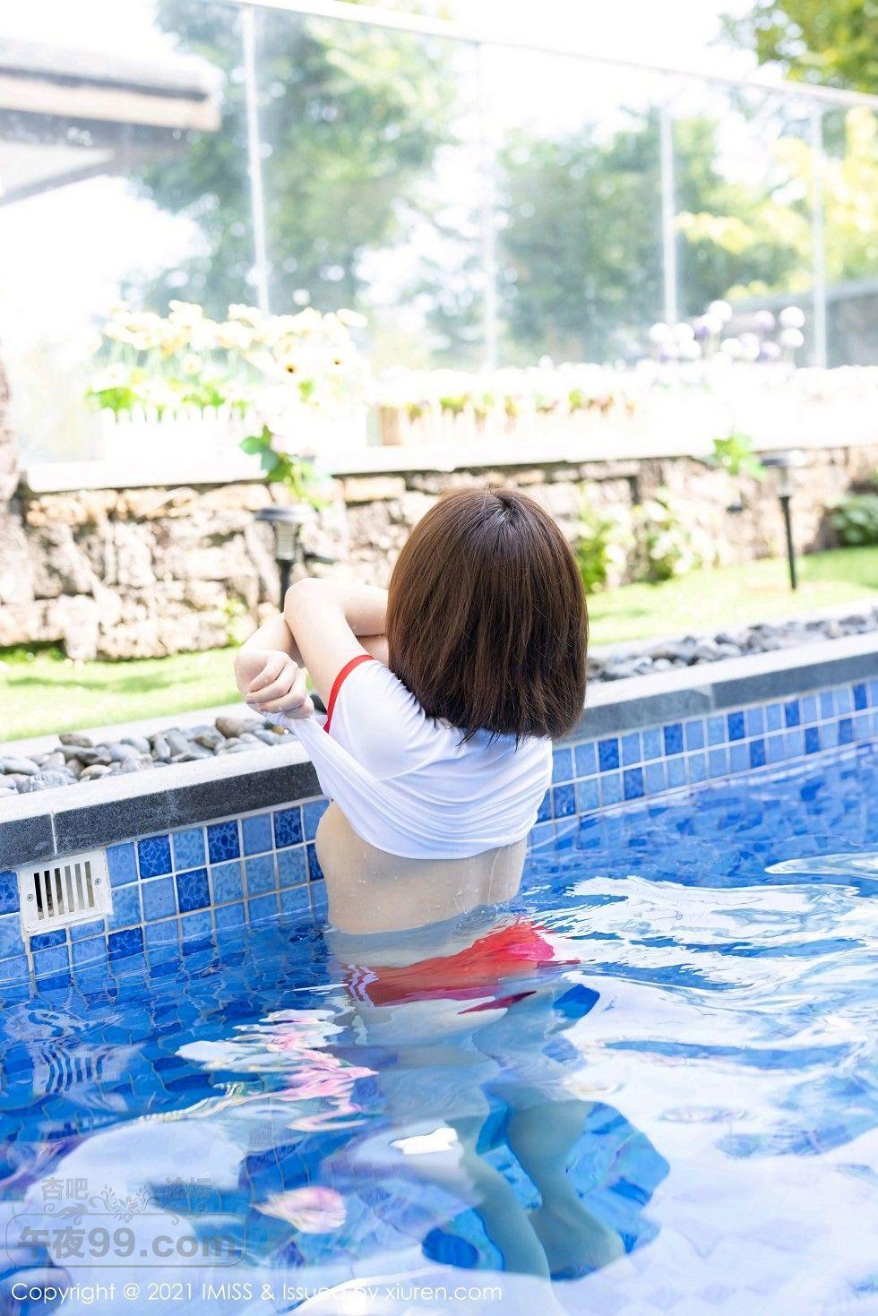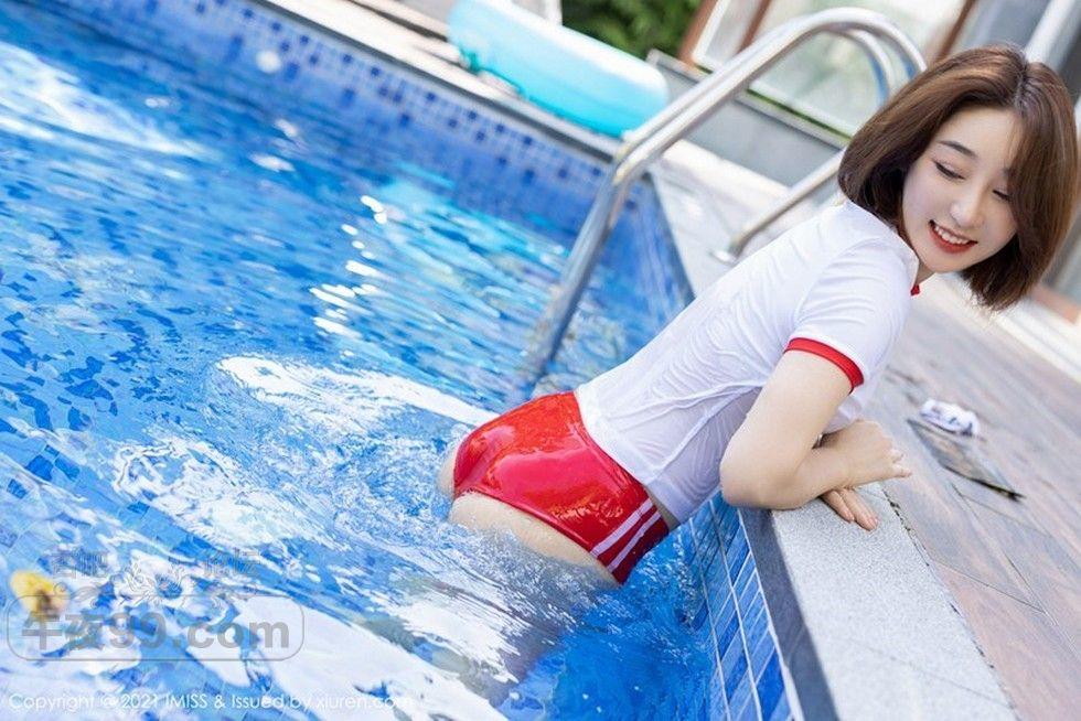 [美腿翘臀] 嫩模九月生户外红色运动内衣秀完美身材泳池湿身透视诱惑写真【50P】 |